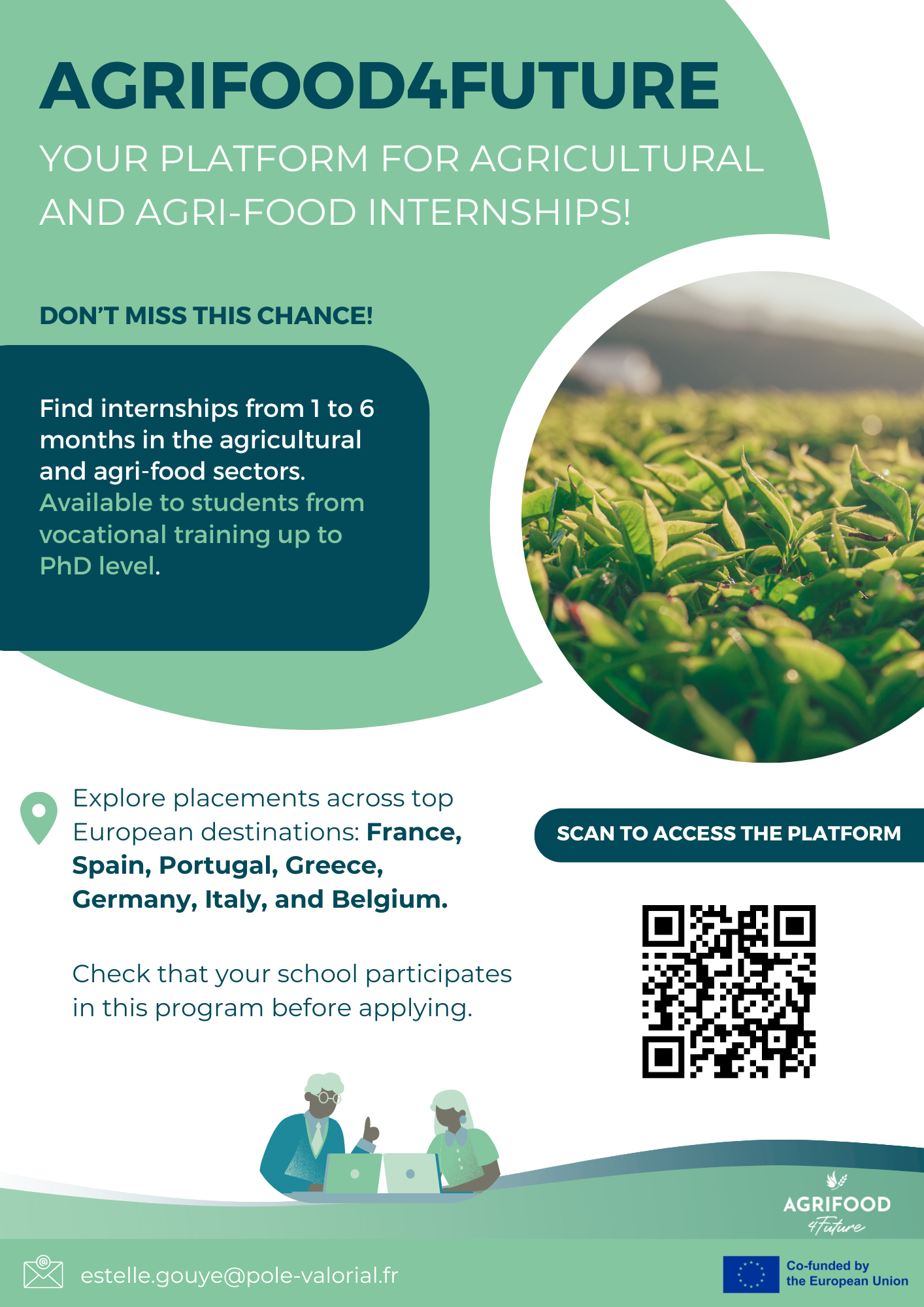 Σας διαβιβάζουμε ενημέρωση που λάβαμε από το Ινστιτούτο Δασικών Ερευνών του ΕΛΓΟ-ΔΗΜΗΤΡΑ σχετικά με το Erasmus+ έργο AgriFood4Future, το οποίο περιλαμβάνει δυνατότητες πρακτικής άσκησης για φοιτητές/ριες στον αγροδιατροφικό τομέα.