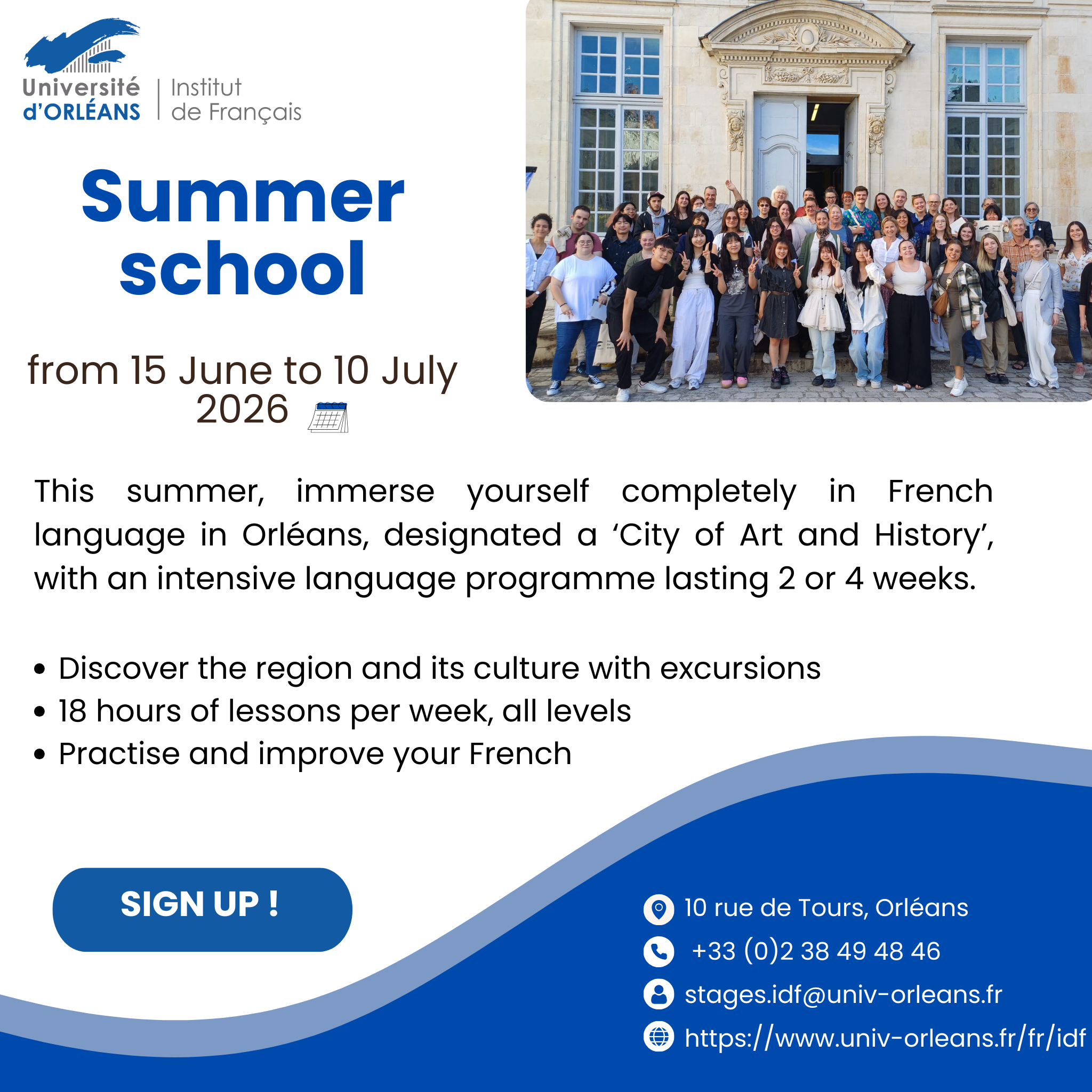 - Registration information : https://www.univ-orleans.fr/en/idf/registration/registration-summer-course