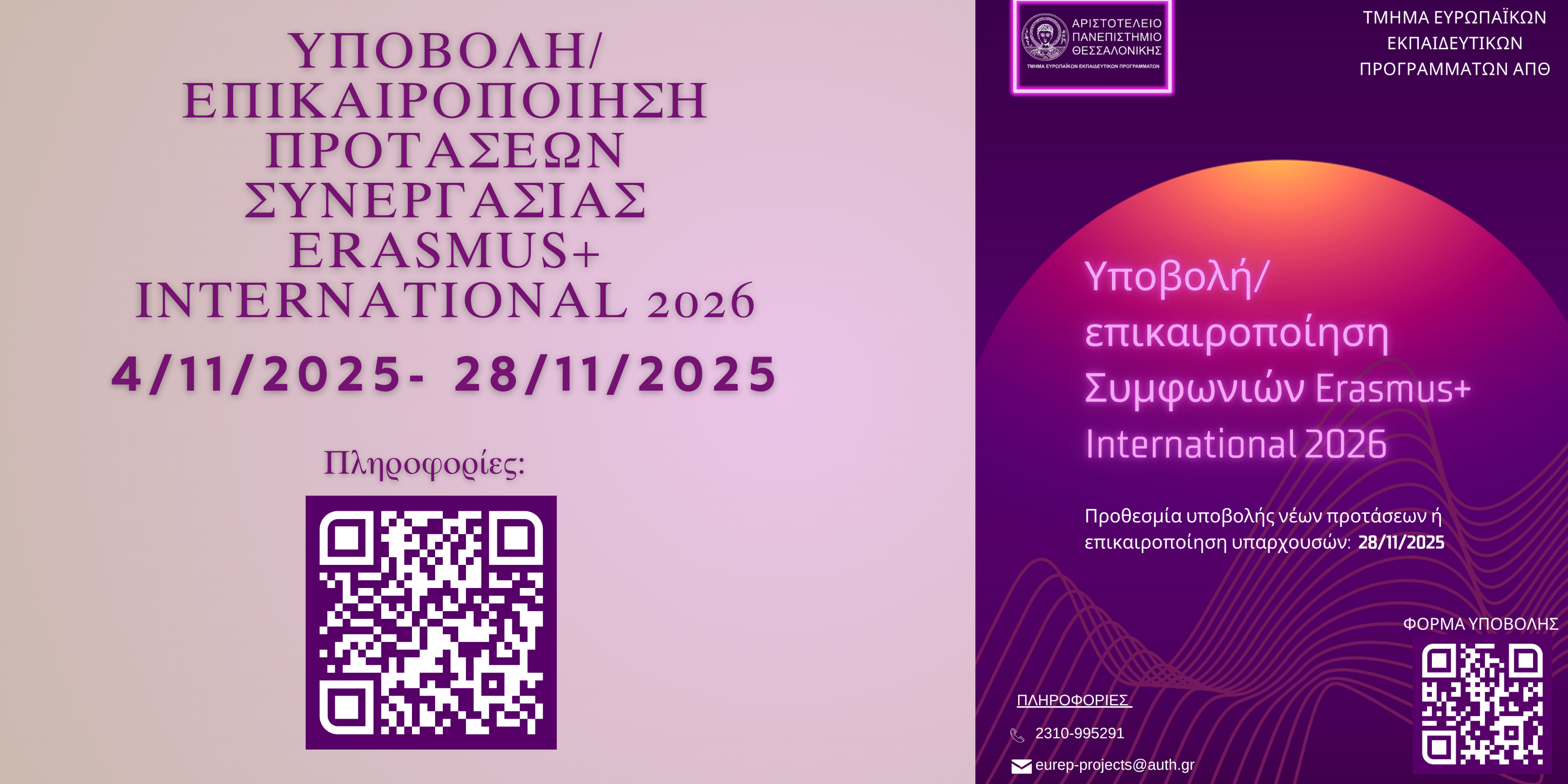 Υποβολή/επικαιροποίηση προτάσεων συνεργασίας Erasmus+ International 2026